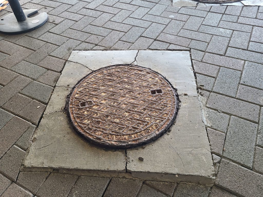 しかし経年劣化により、マンホールの埋め込み箇所にて段差ができてしまい、また滑りやすく足下が悪くなっておりました。