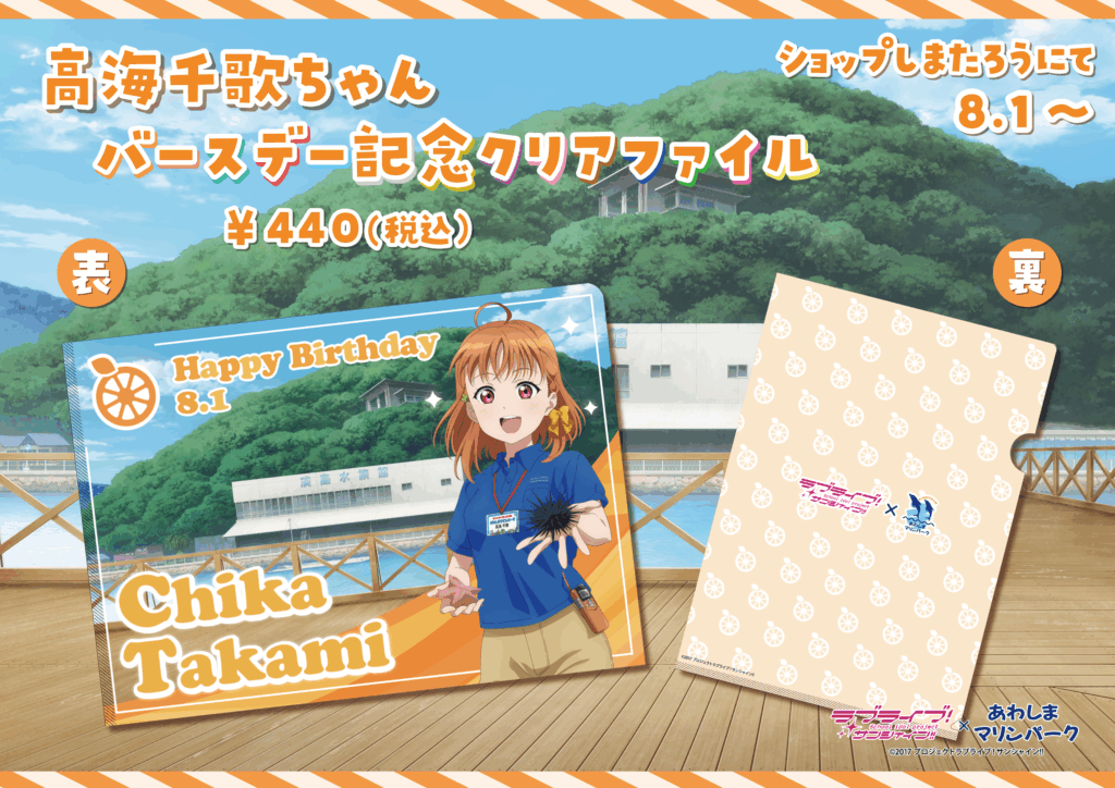 7月の善子ちゃんバースデーイベントから販売を開始した新シリーズ『バースデー記念クリアファイル』の千歌ちゃんVer.が登場デス✨🍊✨